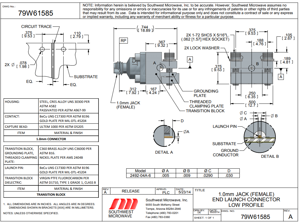建模2492-04A -6 系列產品 1.0毫米(寬)