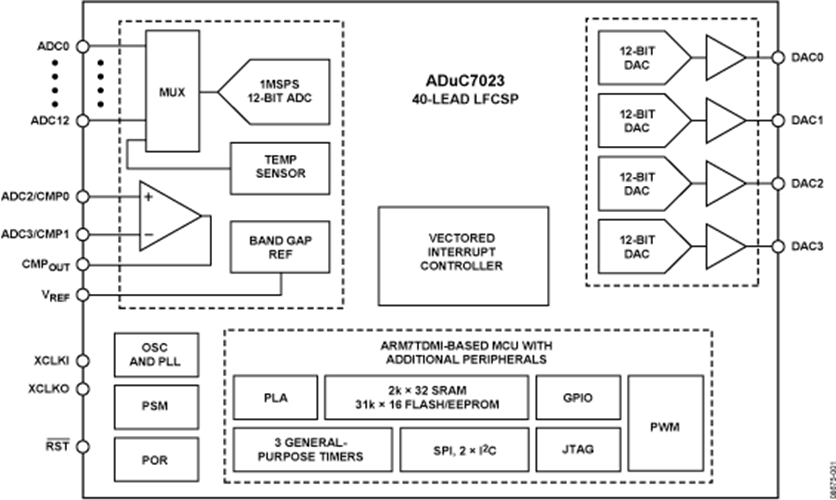 許多元(yuan)件的作業載荷(he)系(xi)數(shu)電壓面積為2.7 V至3.6 V,載荷(he)系(xi)數(shu)溫(wen)度(du)因素面積為-40°C至+ 125°C工(gong)業企業溫(wen)度(du)因素面積。ADuC7023采取32引腳(jiao)(jiao)或40引腳(jiao)(jiao)LFCSP封(feng)口。還具備36球晶圓級CSP打(da)包封(feng)裝(WLCSP)。