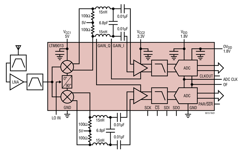 LTM9013IY-AA#PBF是(shi)一(yi)款(kuan) 300MHz 寬帶接收器(qi)。該(gai)器(qi)件(jian)采用(yong)集(ji)成(cheng)系統級封(feng)裝 (SiP) 技術(shu),是(shi) μModule® (微(wei)型模塊) 接收器(qi),內置一(yi)個雙通道高速 14 位 A/D 轉(zhuan)換器(qi)、低(di)通濾(lv)波器(qi)、差分增益級和一(yi)個正交解調器(qi)。