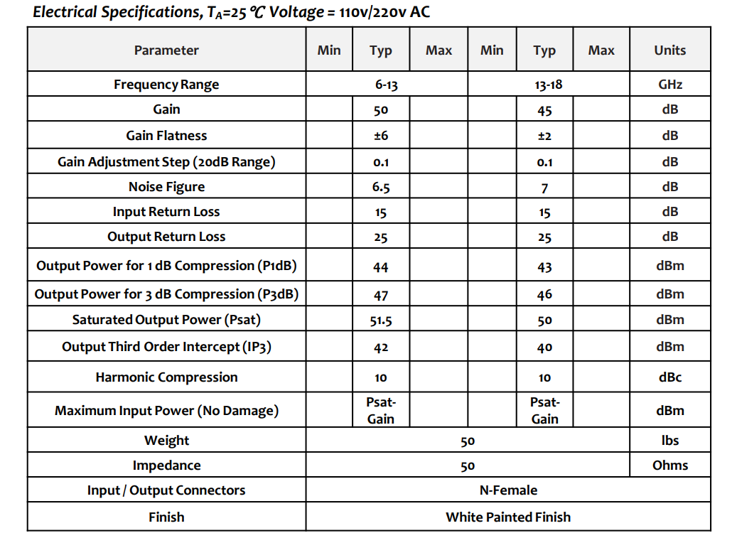 在打開電源之前,確保放大器的輸入和輸出端口被安全地終止到適當的50歐姆負載中。