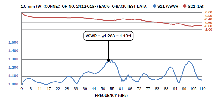 低(di)好(hao)駐波比DC to 110 GHz: 1.25:1 Max