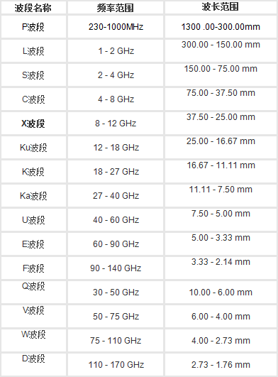 選擇IEEE 521-2002準則,X波長是說 率在8-12 GHz的遠程電波波長,在電磁感應波譜中是屬于微波加熱。而在哪些 時候中,X中波段的平率的范圍則為7-11.2 GHz。波長范圍:37.50 - 25.00 mm。